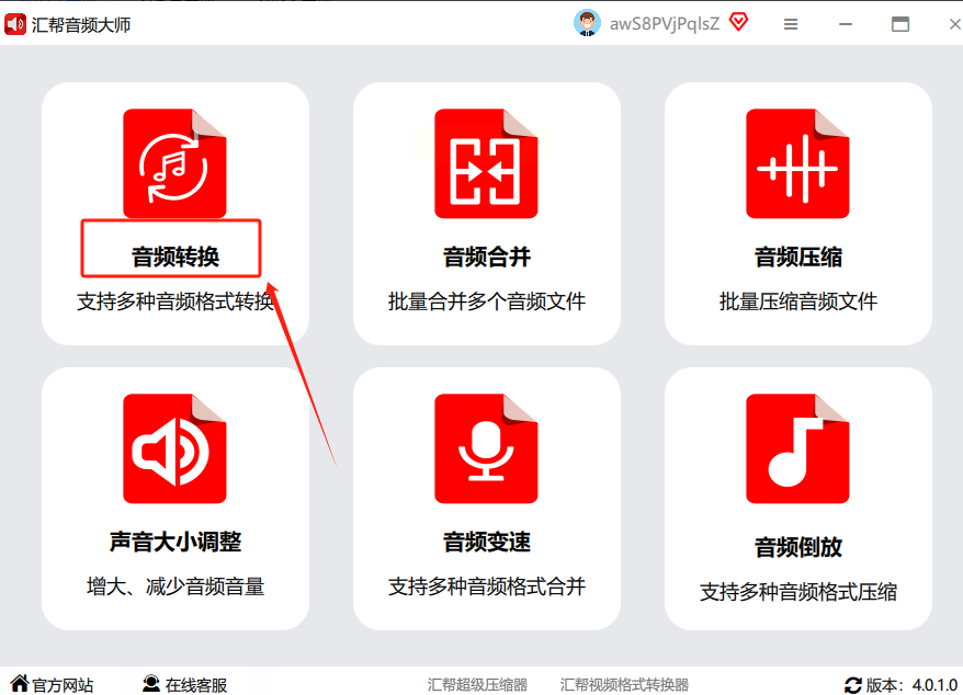 2. 进入音频转换模块:软件启动后,你会看到主界面上有多个功能选项。找到并点击【音频转换】这个功能模块,就会进入到专门的文件转换页面。