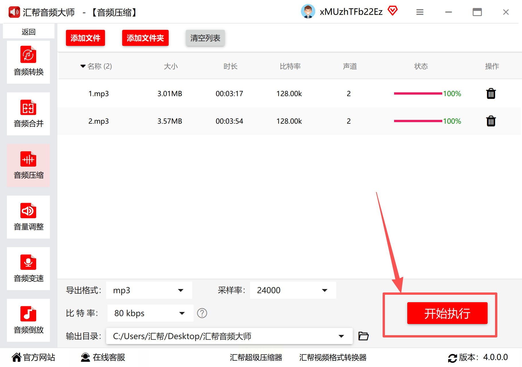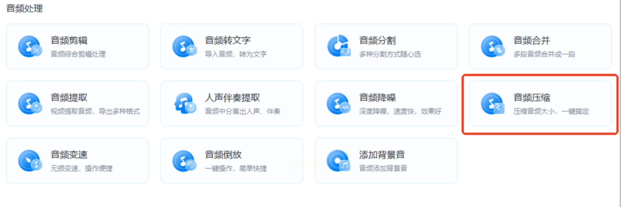 步骤一:启动软件后,在主界面找到并点击“音频压缩”功能模块。它支持一次性添加多个文件进行批量处理,非常适合整理大量音乐或录音。