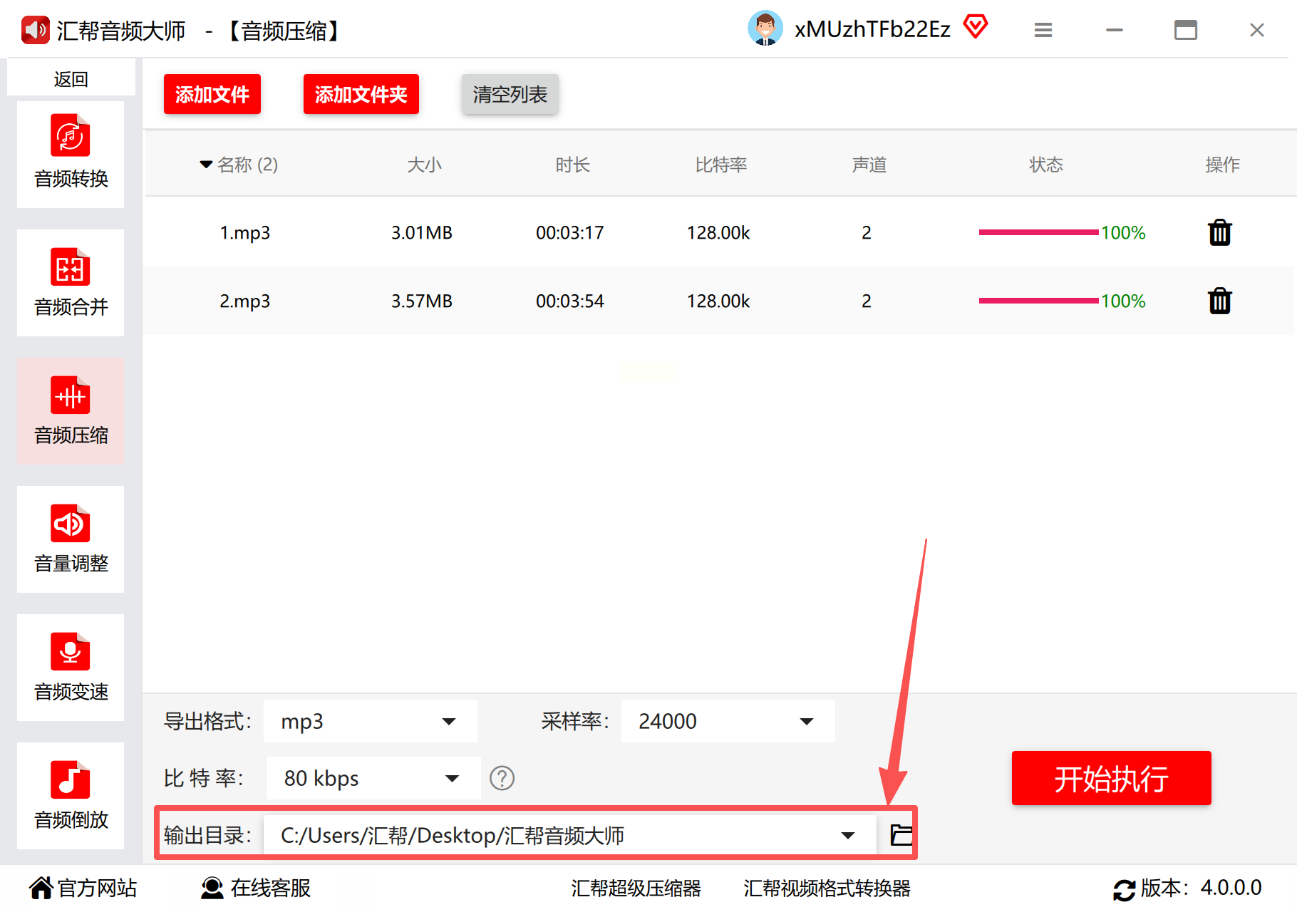 步骤三:在输出设置中,确认格式选择为“MP3”。虽然它可能支持转换其他格式,但我们的目标是压缩,保持MP3格式即可。