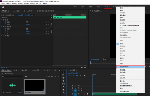 步骤一:在PR中新建或打开一个项目,将需要倒放的音频文件导入到项目面板,并将其拖至时间轴轨道上。
