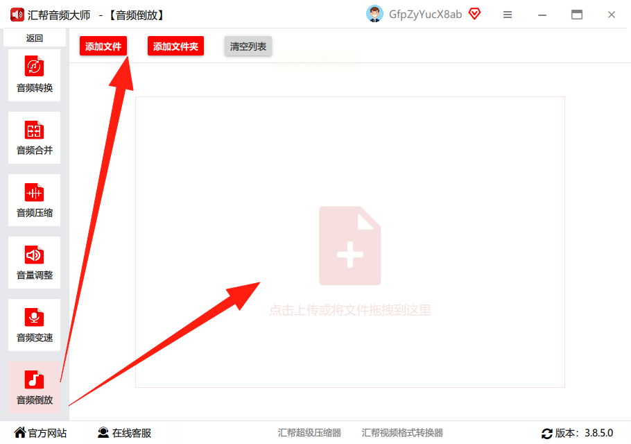 汇帮音频大师提供了直接的音频倒放功能,它的界面设计注重用户操作的连贯性,将核心功能置于显眼位置。