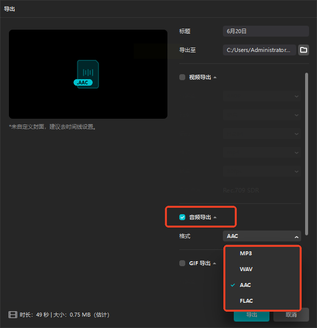 3. 勾选"仅导出音频" → 格式选AC3 → 设置输出路径