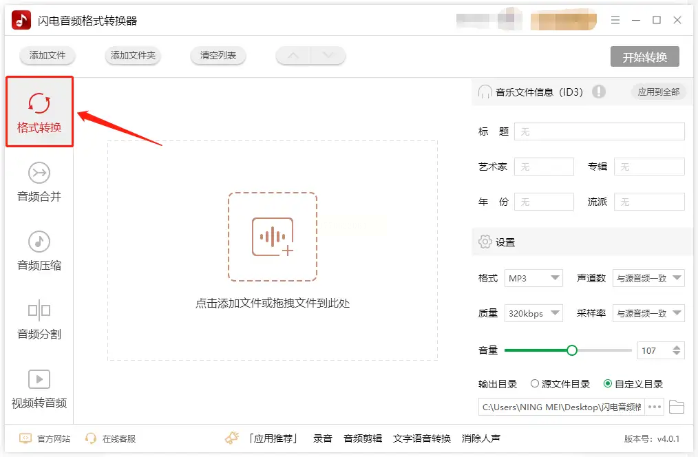 在电脑上安装并运行“闪电音频格式转换器”。软件主界面通常会清晰罗列各项功能,找到并点击【格式转换】或类似的选项,进入核心操作区域。
