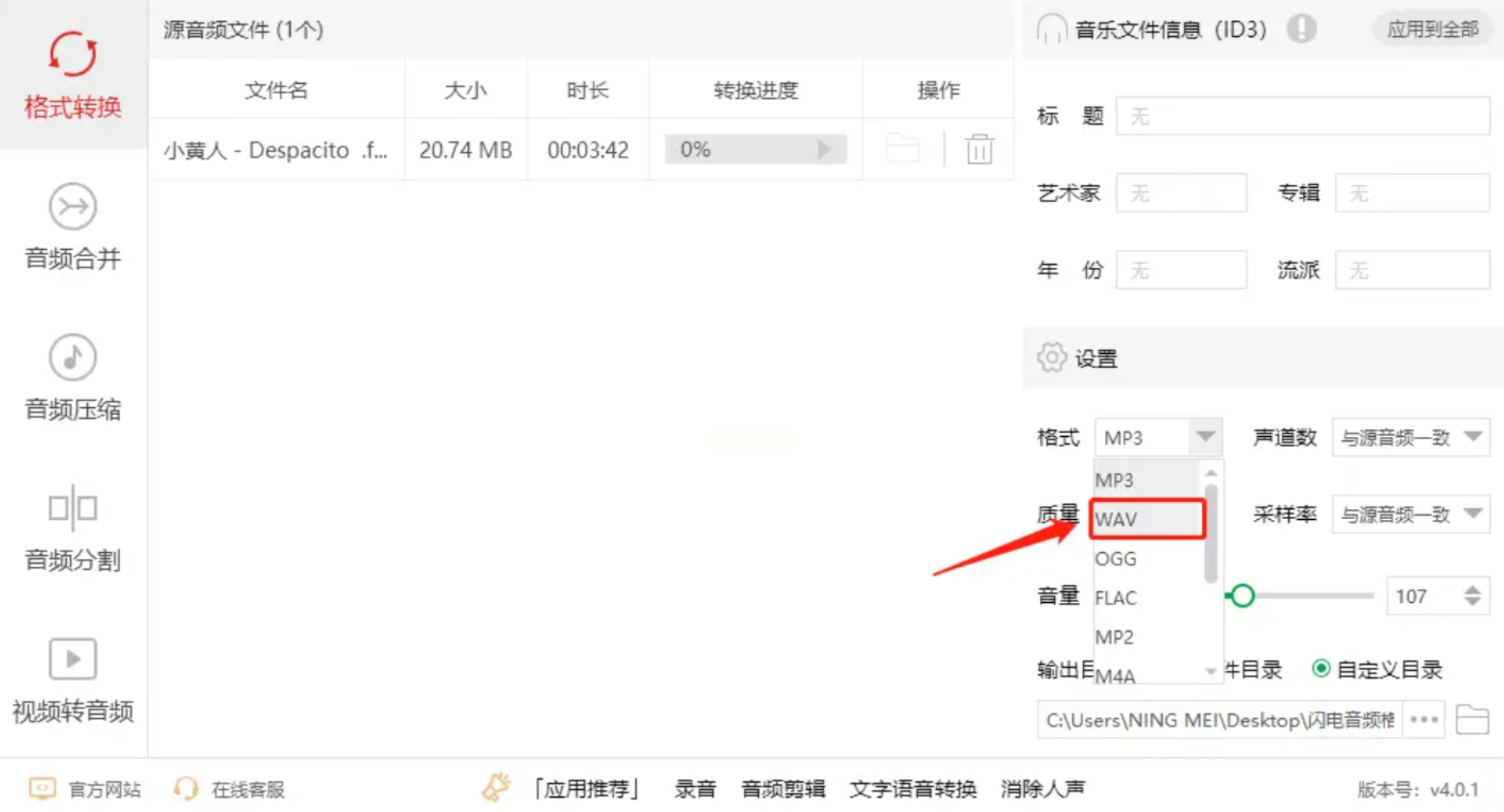 方案一:使用“闪电音频格式转换器”(桌面软件)