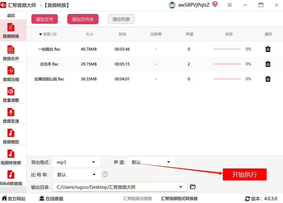 FLAC转为MP3格式方法二:汇帮音频大师(适合Windows系统批量转换)