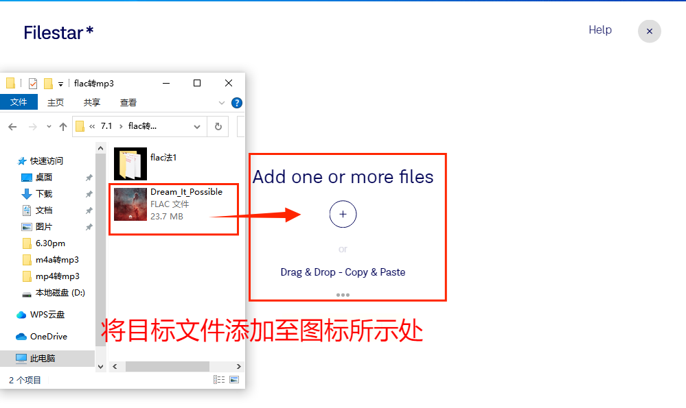 1. 打开Filestar软件,在主界面找到“添加文件”区域,将FLAC文件拖入。