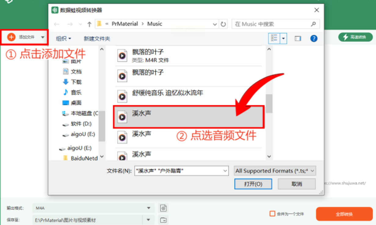 2. 进入转码界面后,点击“添加歌曲”或“添加文件”,从本地目录中选取需要转换的OGG文件。该功能一般支持常见音频格式的导入。