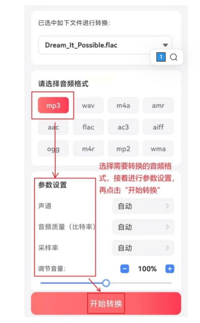 3. 选择文件后,进入输出设置页,在格式列表中选择“MP3”。部分应用允许自定义比特率等参数,您可根据需要调整,或直接使用推荐配置。