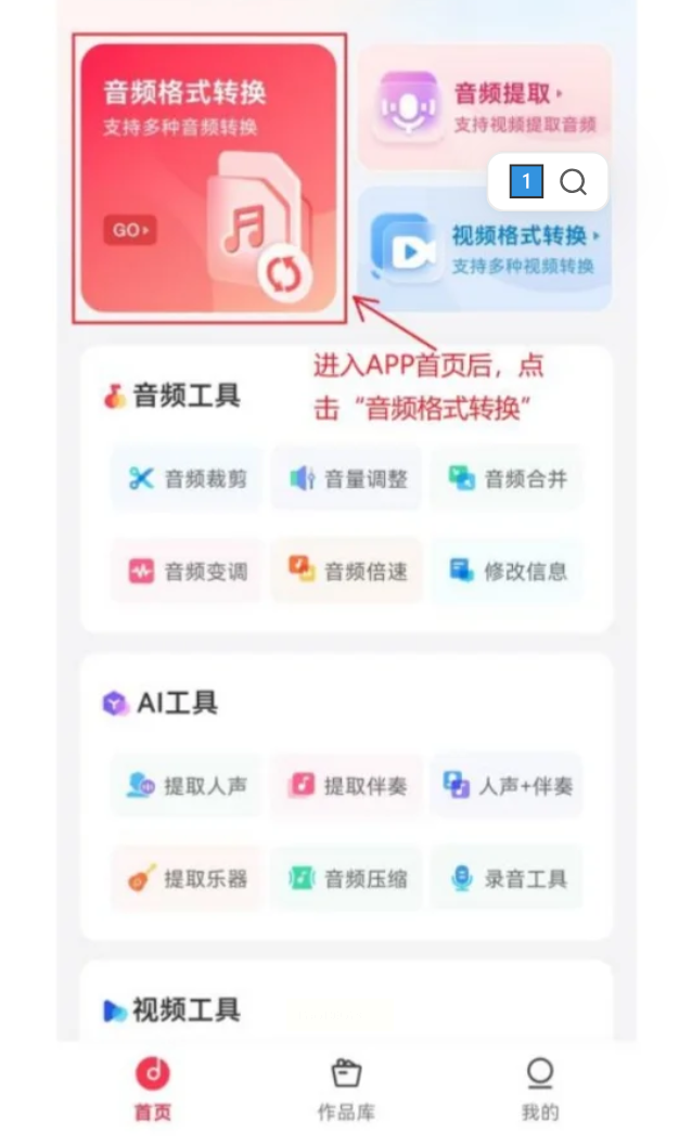 1. 在应用下载并安装嗨格式音频转换器APP,打开后在首页或功能列表中找到“音频格式转换”选项,点击进入。