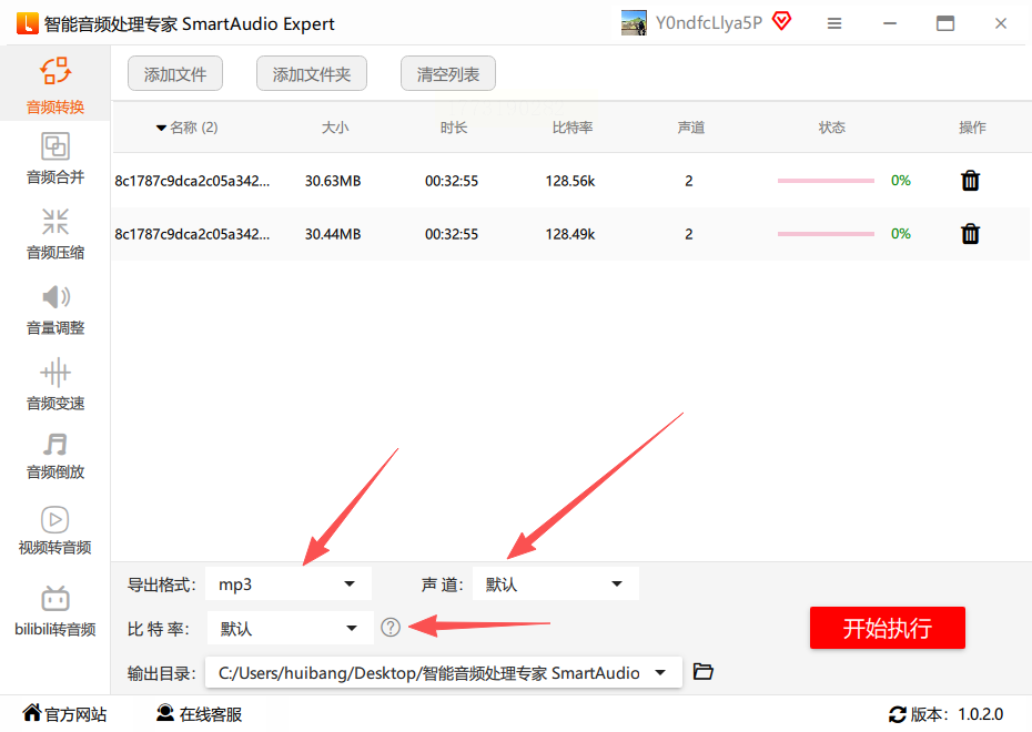 3. 在"输出设置"中可调整比特率(128-320kbps)、声道等参数
