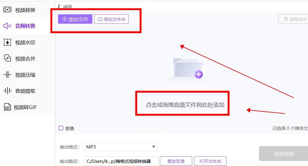 然后找到添加文件的选项,把想要转换的MP3文件导入进去。