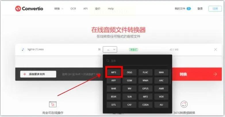 步骤二:在输出格式下拉菜单中,选择MP3作为目标格式。
