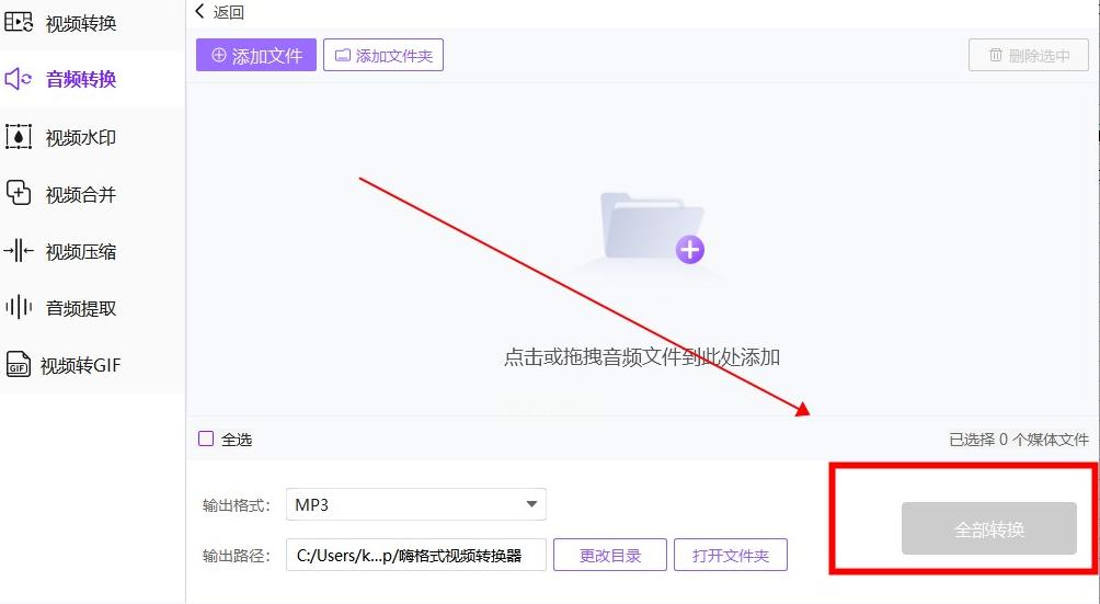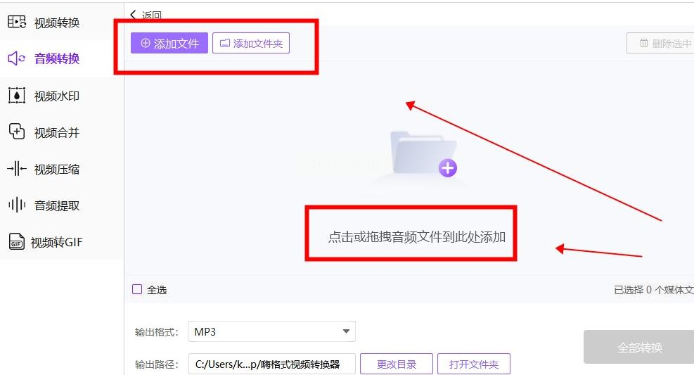 3. 导入文件:点击“添加文件”,从电脑文件夹中选中要转换的MP3文件,支持多选和批量导入。