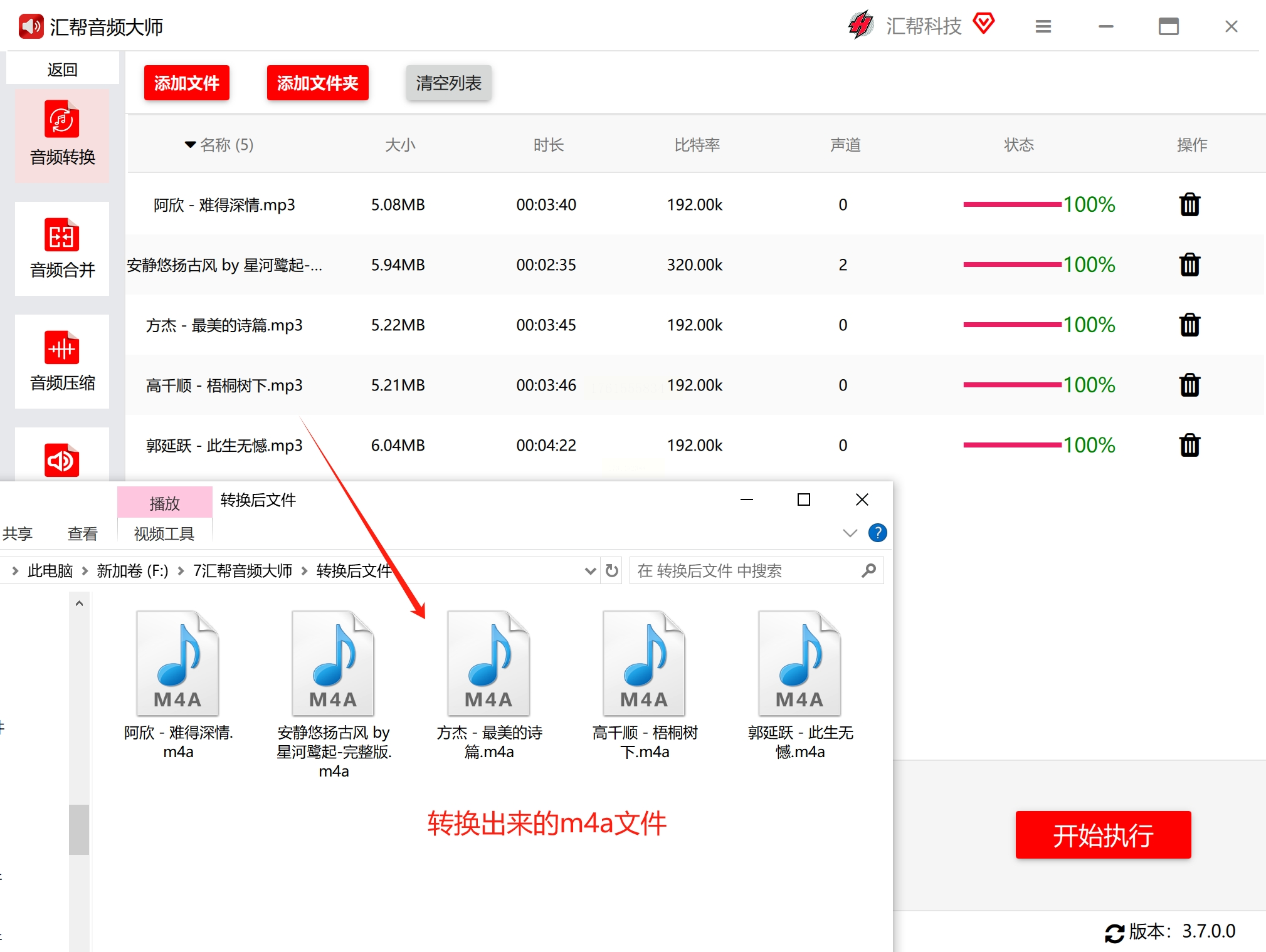 6. 开始转换:点击“开始转换”,等待进度条走完,就能在指定文件夹里找到M4R格式的文件啦!