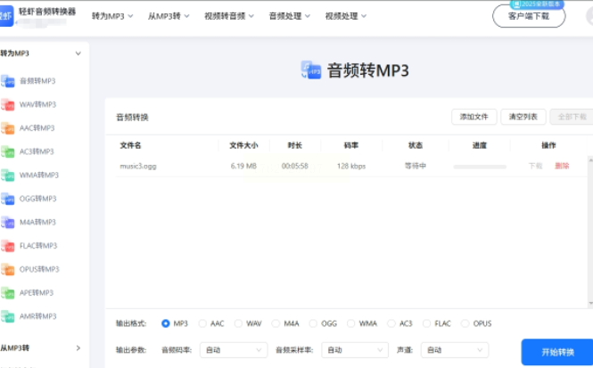 3. 根据需要调整码率和采样率,点击"开始转换"