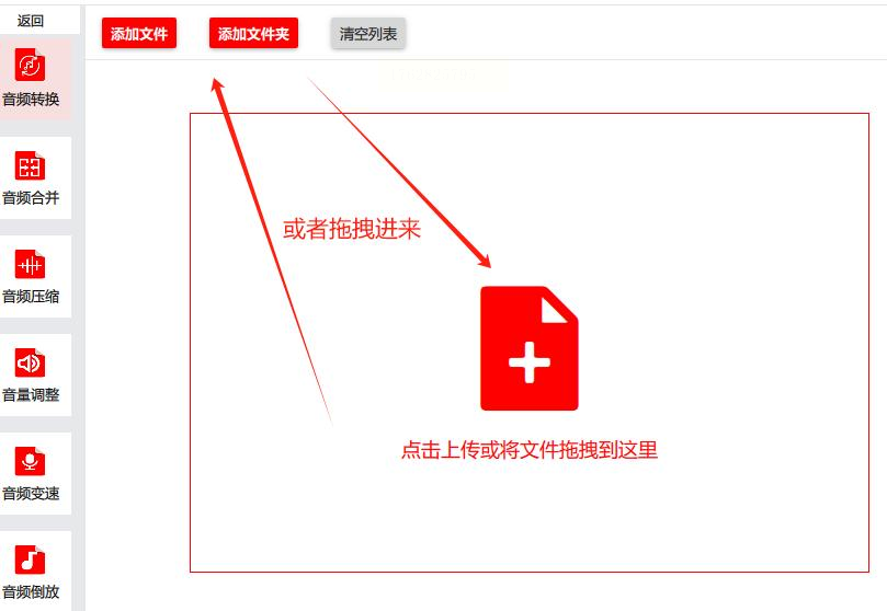 2. 点击左上角的"添加文件",或者直接把文件拖拽到指定区域