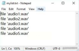 3. 新建一个文本文件,名字随便,比如「mylist.txt」,里面一行写一个音频文件名,格式是: