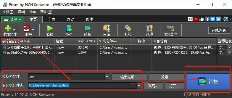 步骤1:启动Prism软件,点击主界面"添加文件"按钮,选择B站缓存视频。
