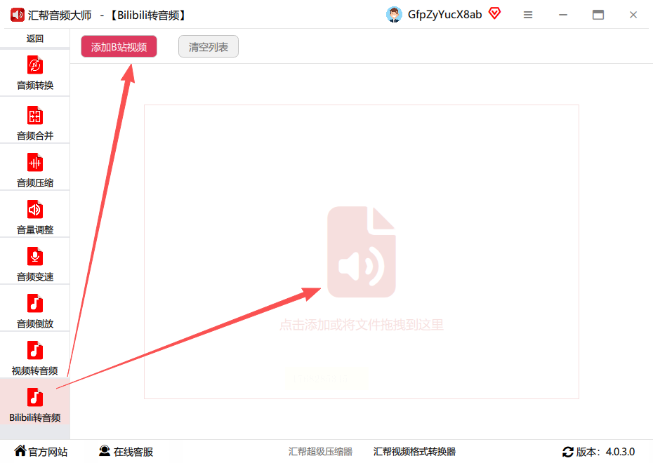 步骤2:在主界面找到"bilibili转音频"功能模块,点击进入转换界面。