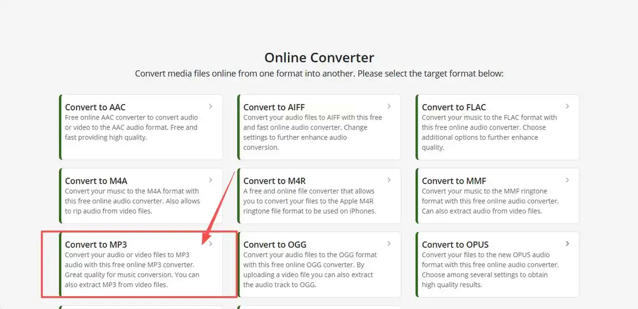 1. 进入音频转换页面:在官网找到「音频」分类,选择「MP3转换器」。