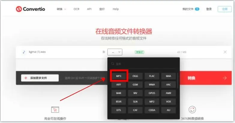 步骤二:在转换目标选项中,选择“MP3”格式。