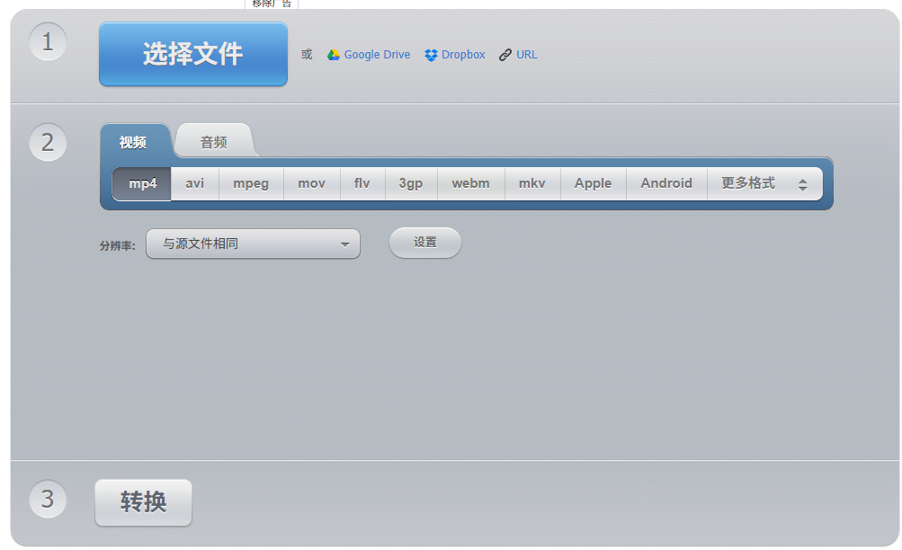 步骤二:点击“选择文件”按钮,从你的电脑中上传MP3文件。你也可以选择从Google Drive或Dropbox等云存储中导入。
