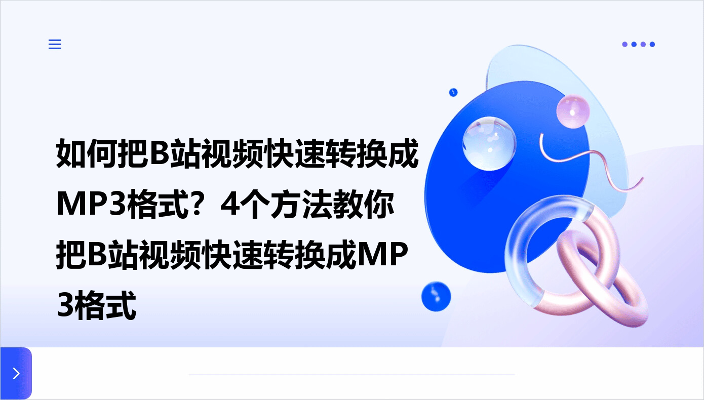 在信息爆炸的时代,B站作为知识分享和内容创作的重要平台,汇聚了海量优质视频资源。对于习惯听音频的用户而言,把B站视频快速转换成MP3格式,既能节省流量,又能在通勤、运动等场景中高效利用碎片时间。本文将详细介绍4种把B站视频快速转换成MP3格式的方法,帮助你轻松实现音频提取,满足个性化的内容获取需求。