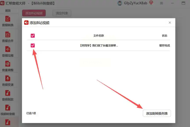 - 勾选需转换的视频,点击「添加到转换列表」;