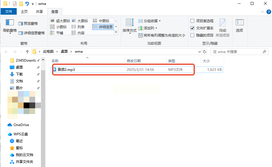 步骤一:打开存放WMA文件的文件夹,点击窗口上方的【查看】菜单,勾选【文件扩展名】选项,这样你就能看到文件的全名了。