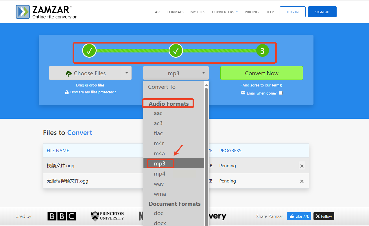 ZAMZAR是个老牌的在线转换网站,能转的文件格式非常多,操作起来也就三步。
