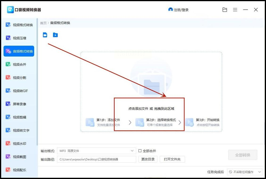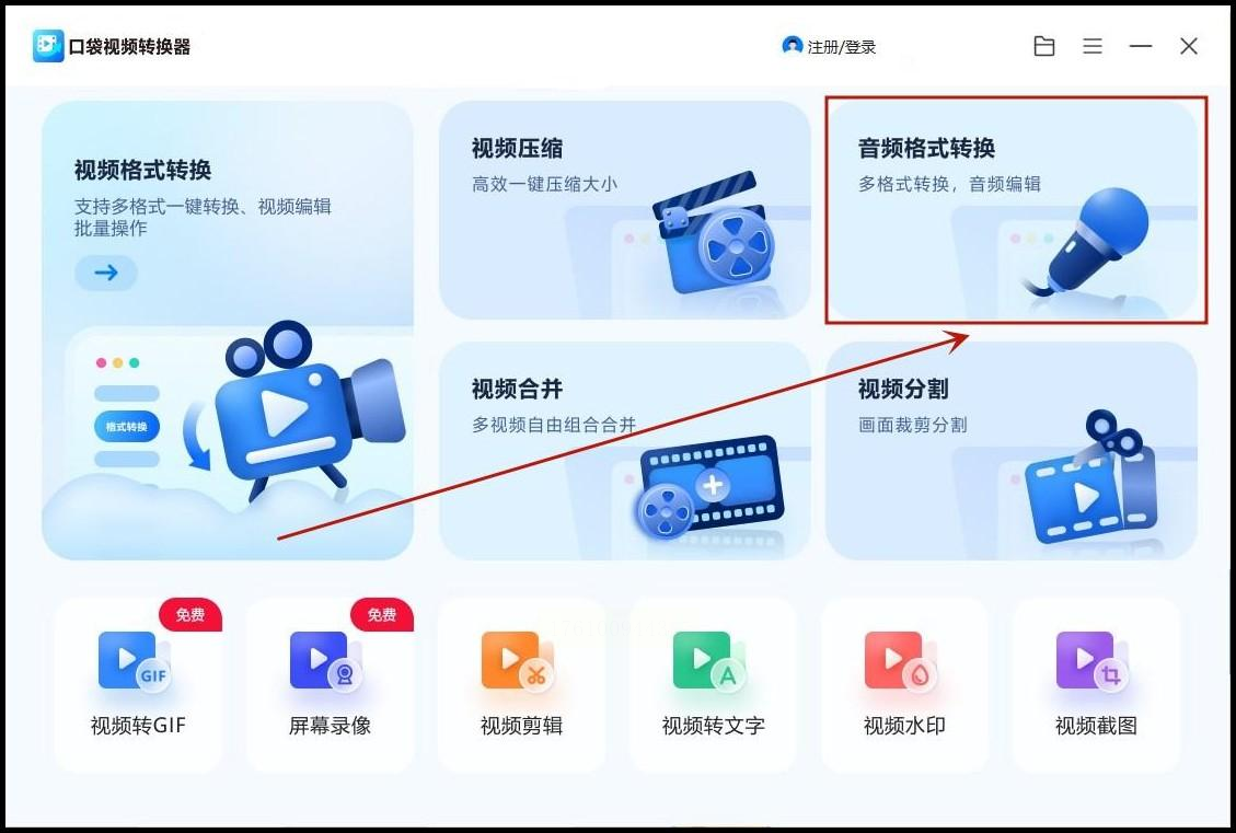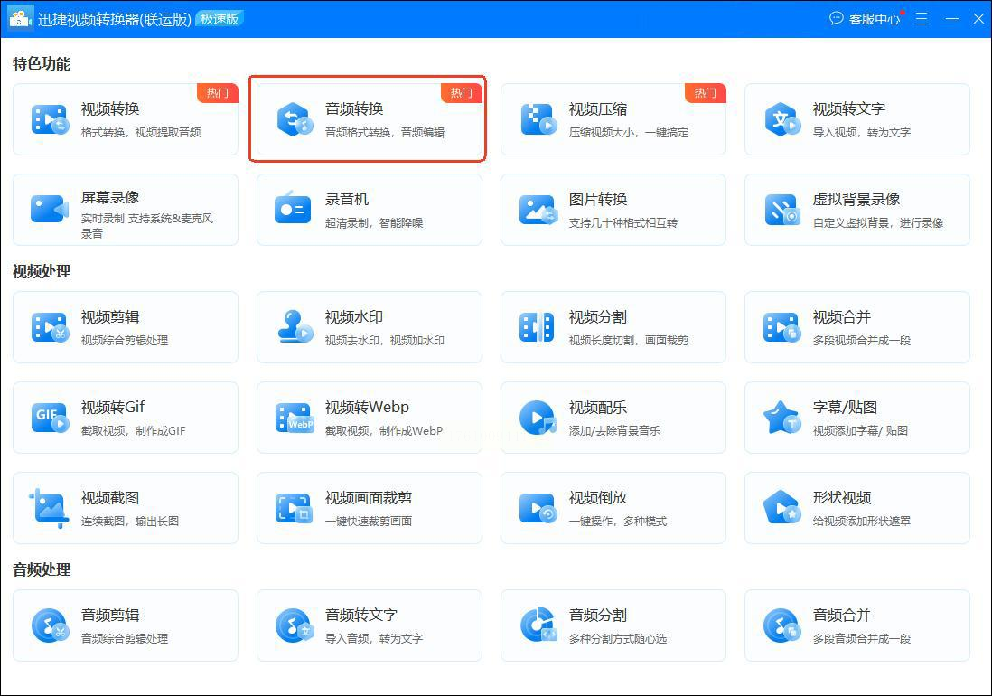 启动软件,在首页找到“音频转换”功能板块,点击并上传你的AAC文件。