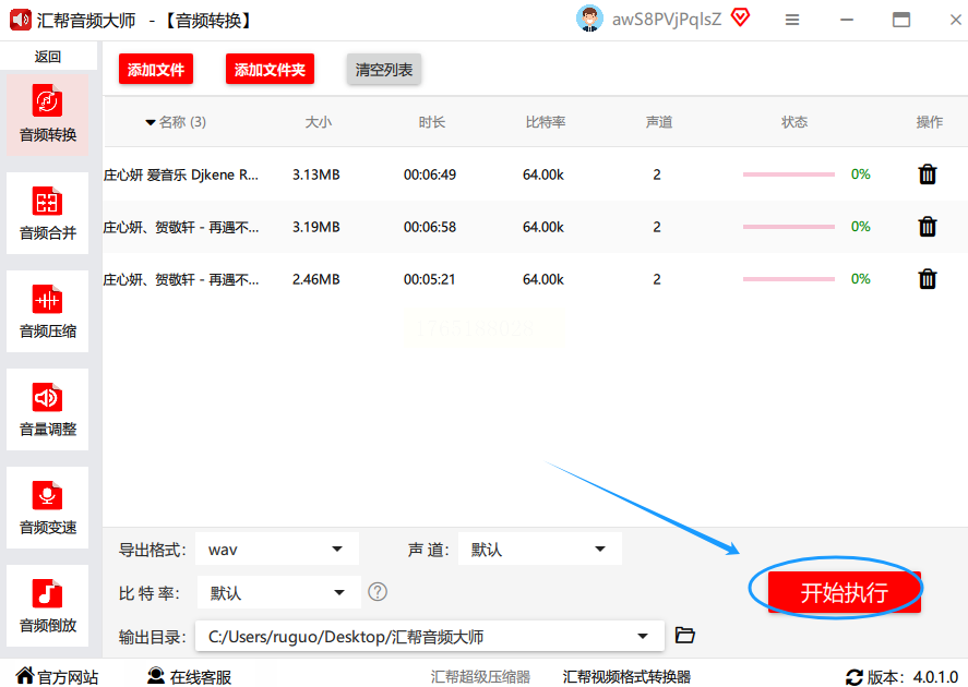 格式转换工具界面弹出来了。点击“添加文件”按钮,把要转的MP3选进来。同样支持多选批量添加。然后,在“输出格式”那里,稳稳地选择“WAV”。