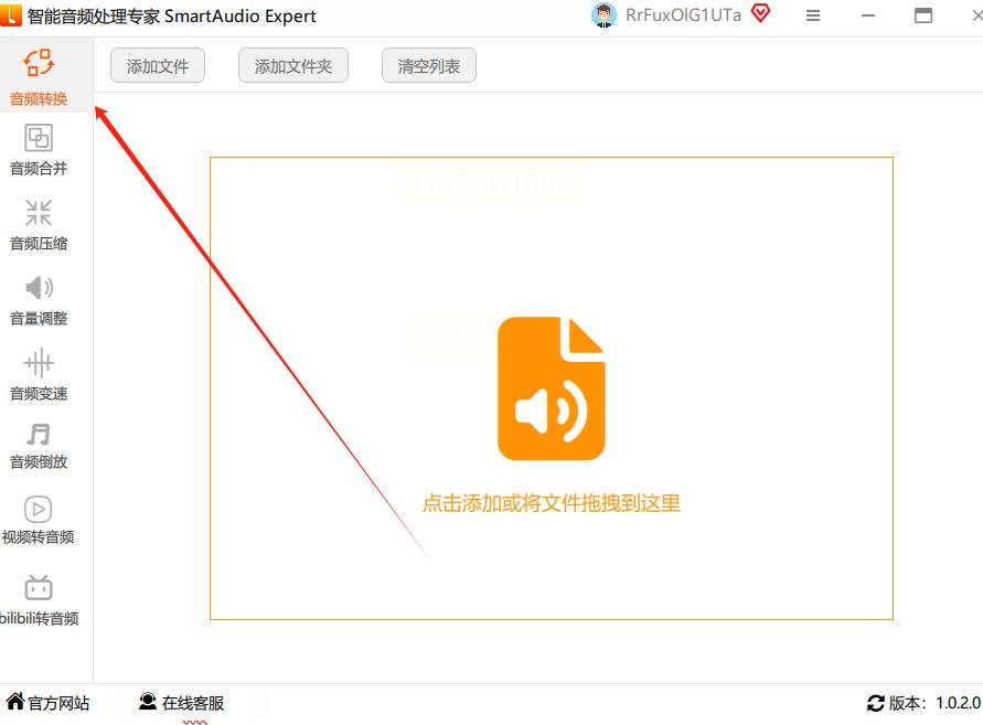 1. 打开工具:打开“智能音频处理专家”点击「音频转换」功能。