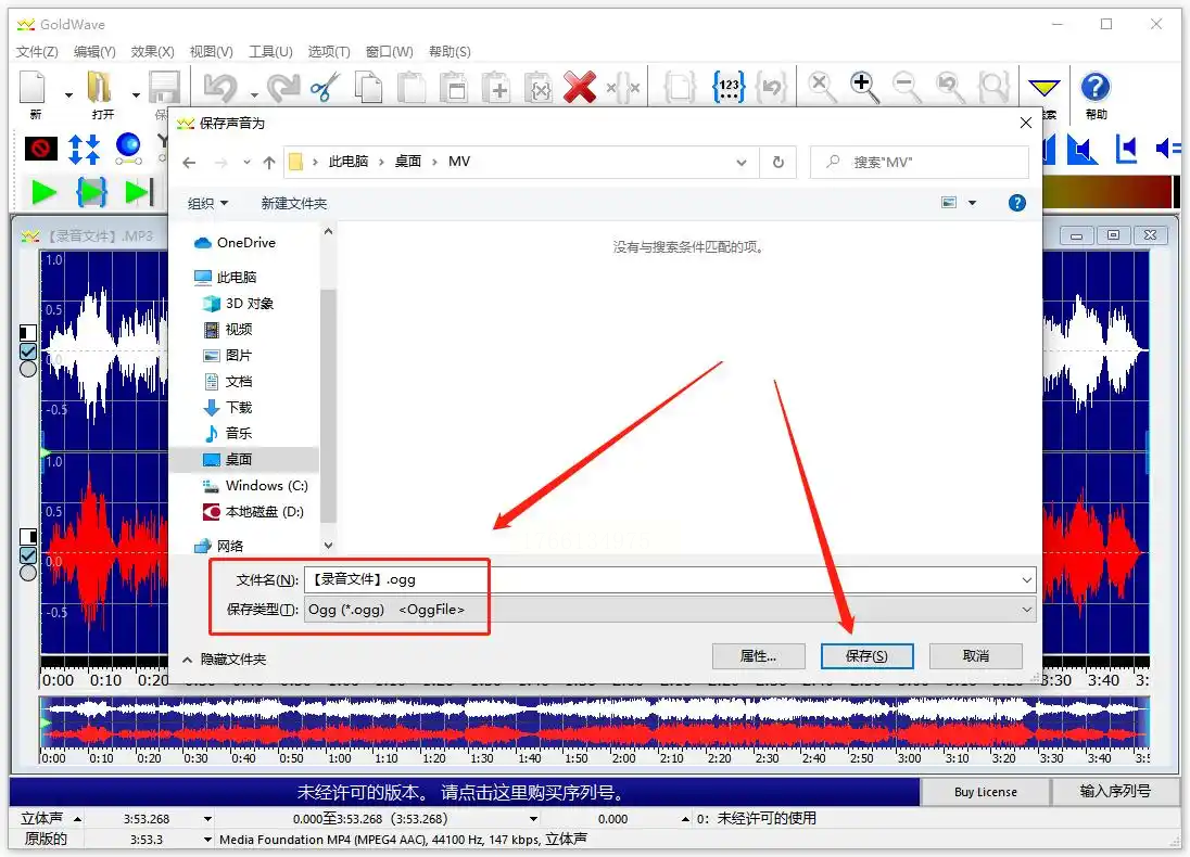 步骤五:为文件命名,选择保存位置,然后点击“保存”按钮。软件可能会弹出一个关于OGG编码质量的设置窗口,初学者直接点击“确定”或使用默认预设即可。软件随即开始渲染并保存为OGG格式文件。