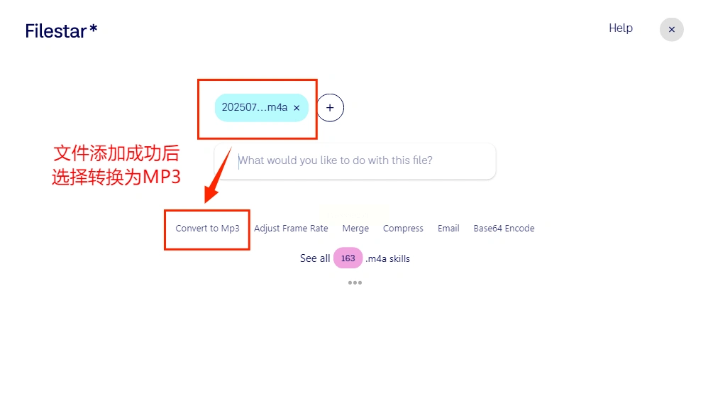 步骤一:启动Filestar软件,在主页面上,你可以点击“添加文件”按钮,或者更直接,把M4A文件从文件夹拖到软件窗口里。