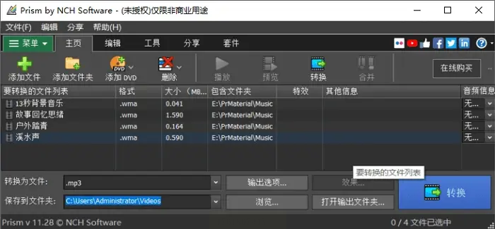 Prism是一款功能较多的媒体处理软件,支持视频和音频格式转换,包括WMA转MP3。