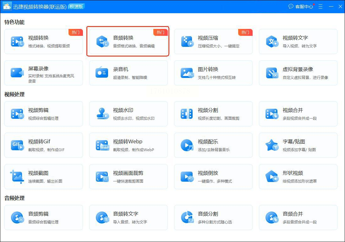 步骤一:启动迅捷视频转换器,在首页找到“音频转换”功能,点击进入并上传AAC文件。