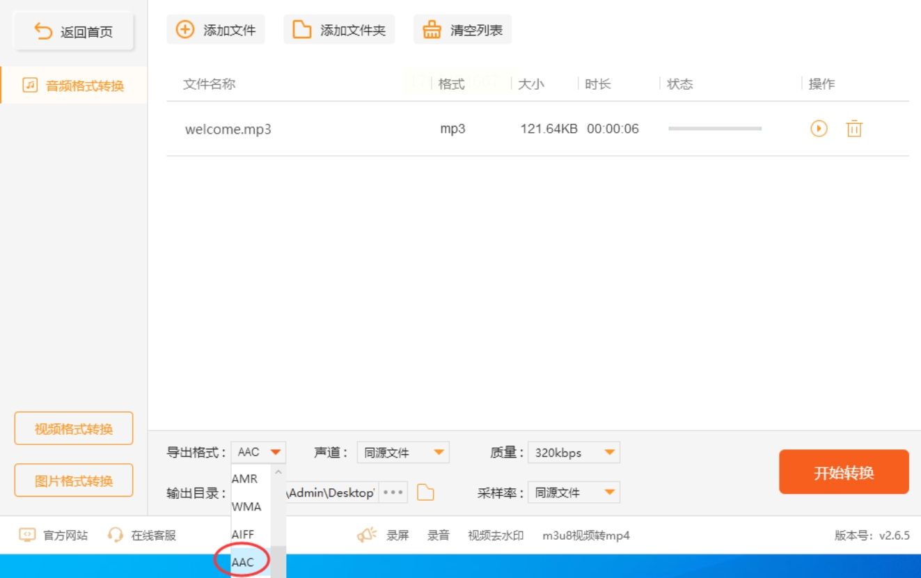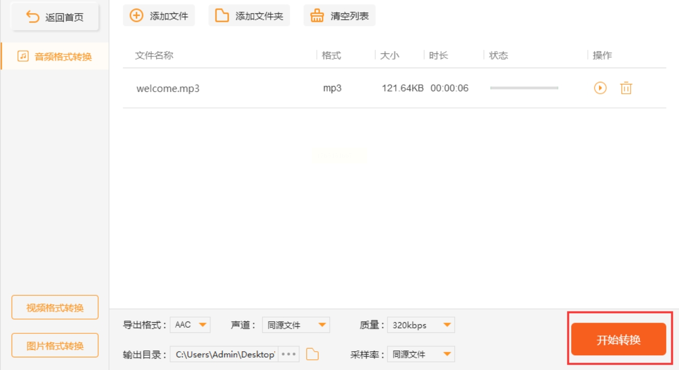 3. 一键启动:文件加好了,目标也锁定了AIFF,那就没什么好犹豫的了,直接点击那个大大的 【开始】 或 【转换】 按钮。这个软件通常还支持一个很酷的功能:如果你导入的是一个视频文件,它可以直接提取视频里的音频流并将其转换为AIFF,非常方便!