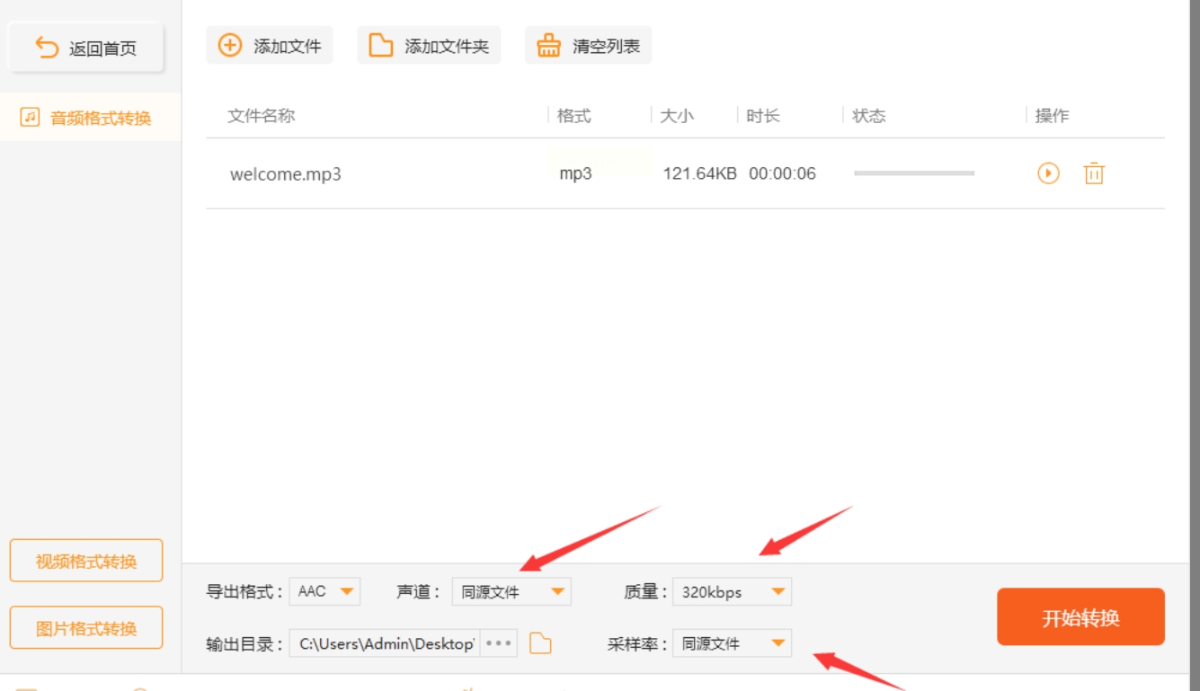 4. 参数微调(可跳过):选好AIFF后,旁边或下面可能会出现一些高级设置,比如声道(立体声/单声道)、采样率、比特率等。敲黑板! 对于从MP3转AIFF,我们的核心目的是获得无损容器,但MP3本身的音质信息是固定的,所以这些参数保持默认即可,不需要修改。修改它们并不会提升原有MP3的音质,保持默认是最稳妥的。