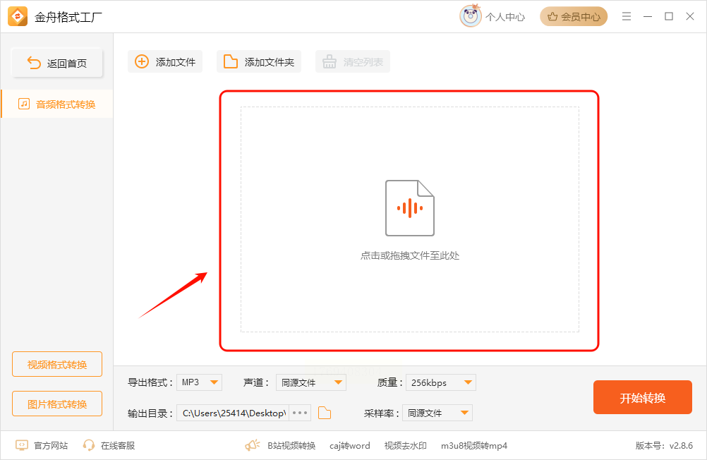 启动汇帮音频大师后,在主界面找到“音频转换”模块,点击进入即可看到丰富的格式转换选项。