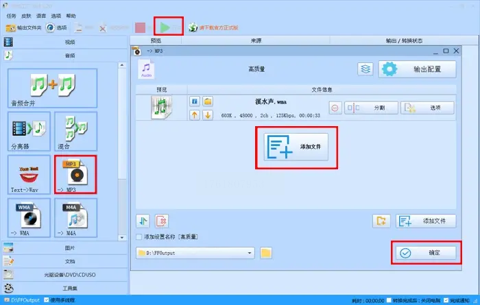4. 设置完成后点击"确定",再按"开始"按钮进行转换