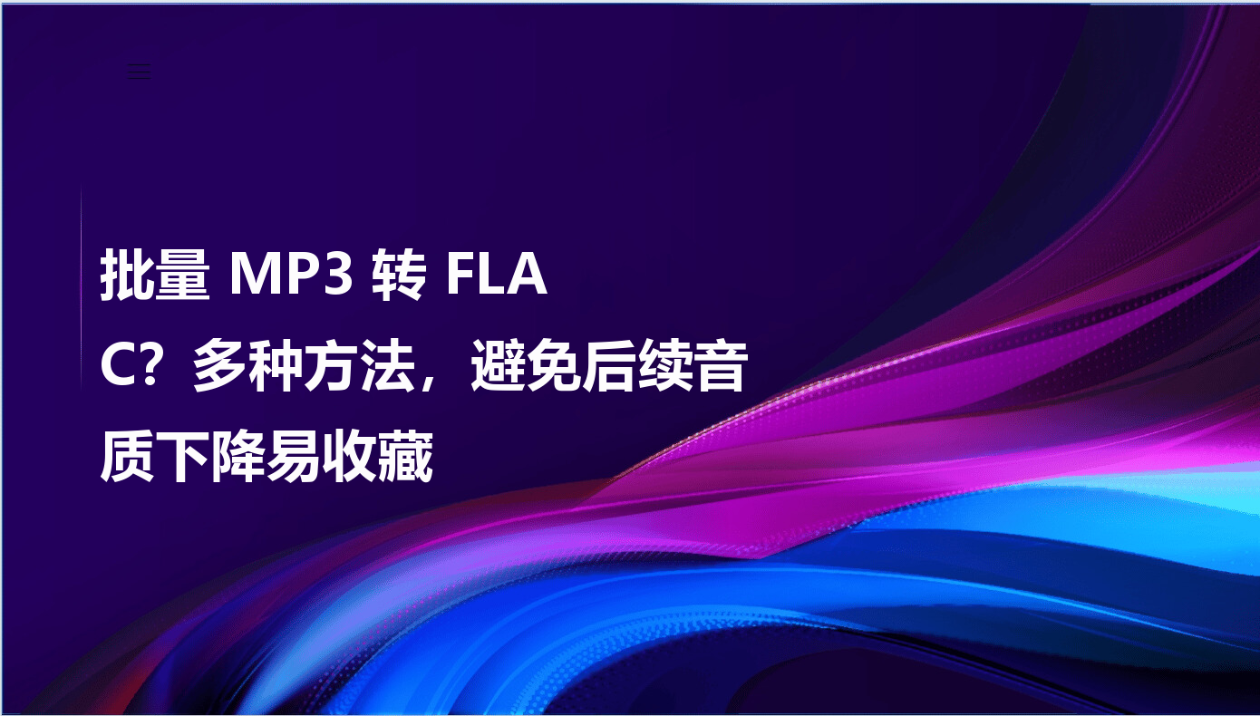 答:不会。转换过程本身无法恢复MP3压缩时丢失的音频信息。FLAC格式的作用是保持当前音质水平不再因后续操作而下降,它提供的是一个无损的“保存环境”。