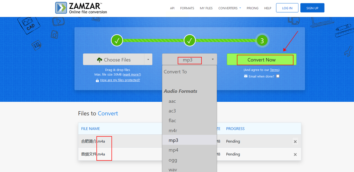 步骤一:使用浏览器访问Zamzar网站,找到音频转换功能页。