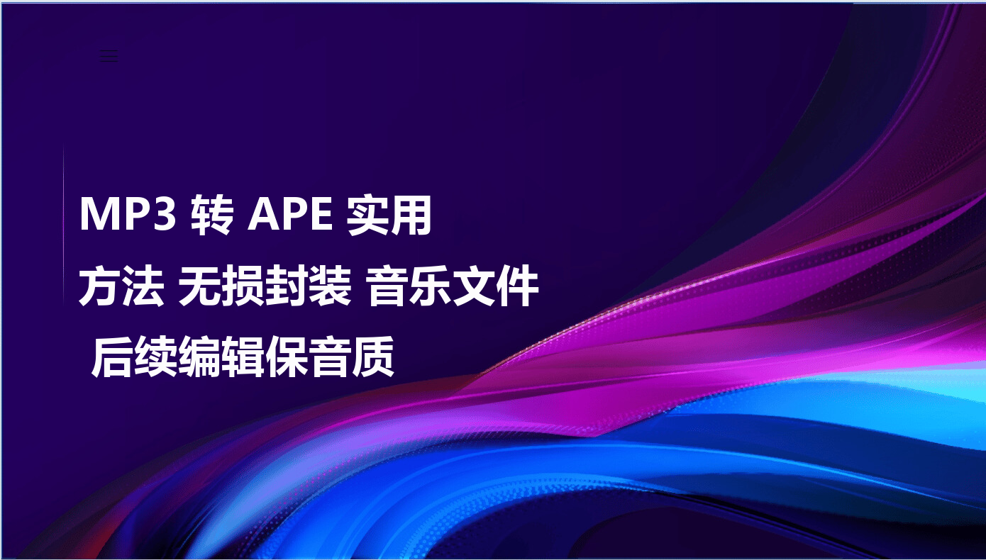 在数字音乐的世界里,我们常常面临格式与音质的选择。MP3格式因其出色的压缩率,成为存储和分享的通用选择,文件小巧,便于携带。然而,对于追求原汁原味声音细节的耳朵来说,MP3的有损压缩意味着部分音频信息的永久丢失。这时,APE格式进入了视野。它是一种无损压缩格式,能够将音频数据完整保留,还原CD般的聆听体验,同时文件体积又比纯粹的WAV等格式更友好。将已有的MP3文件转换为APE,虽然无法追回MP3压缩时丢失的信息,但可以将其封装为无损格式,便于在支持APE的设备上统一管理,或满足特定播放器、存档对无损格式的要求。本文将清晰展示完成这一转换的几种路径。