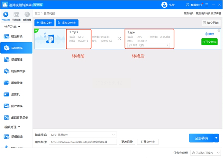 步骤五,转换过程很快,进度条跑完就成功了。转换完成后,软件会生成新的APE文件,你原来的MP3源文件依然会保留在原来的位置,不会被覆盖或删除,这点可以放心。