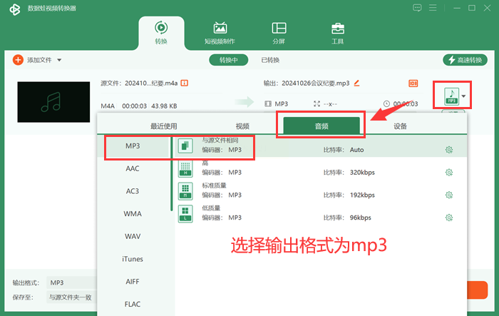 步骤2:选择MP3格式