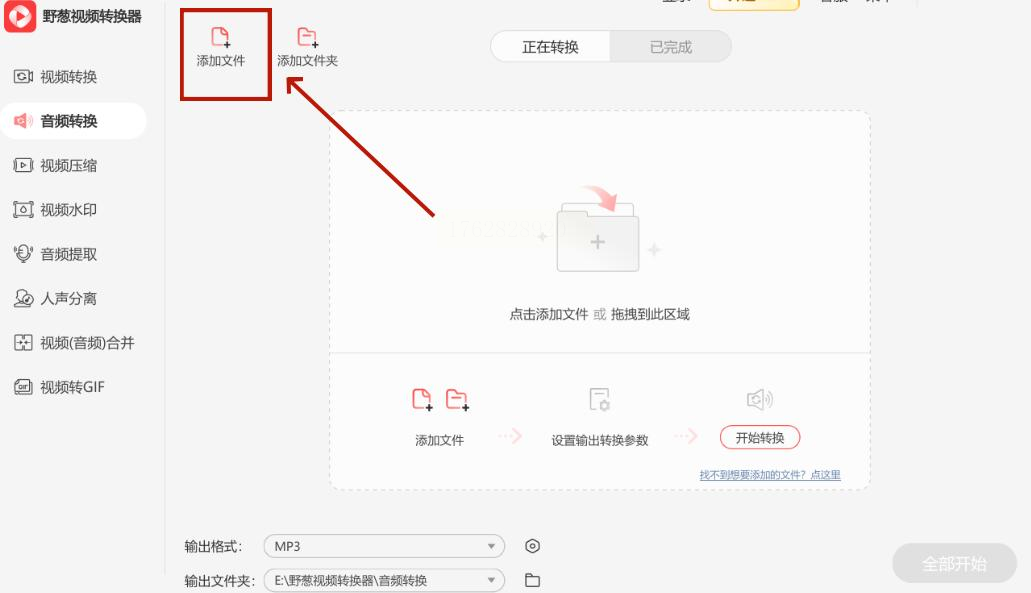 步骤1:打开野葱视频转换器,点击左侧"音频转换"模块。