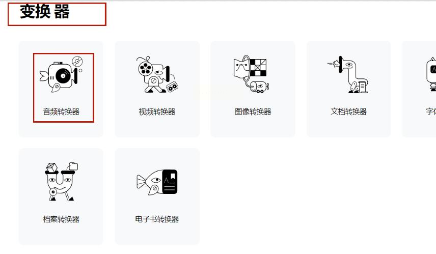 步骤1:打开123APPs网站,在首页找到"变换器"板块,选择"音频转换器"。