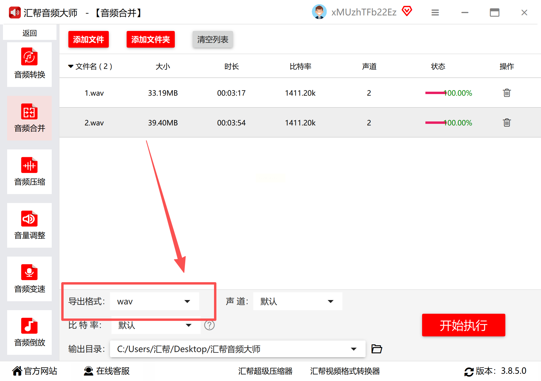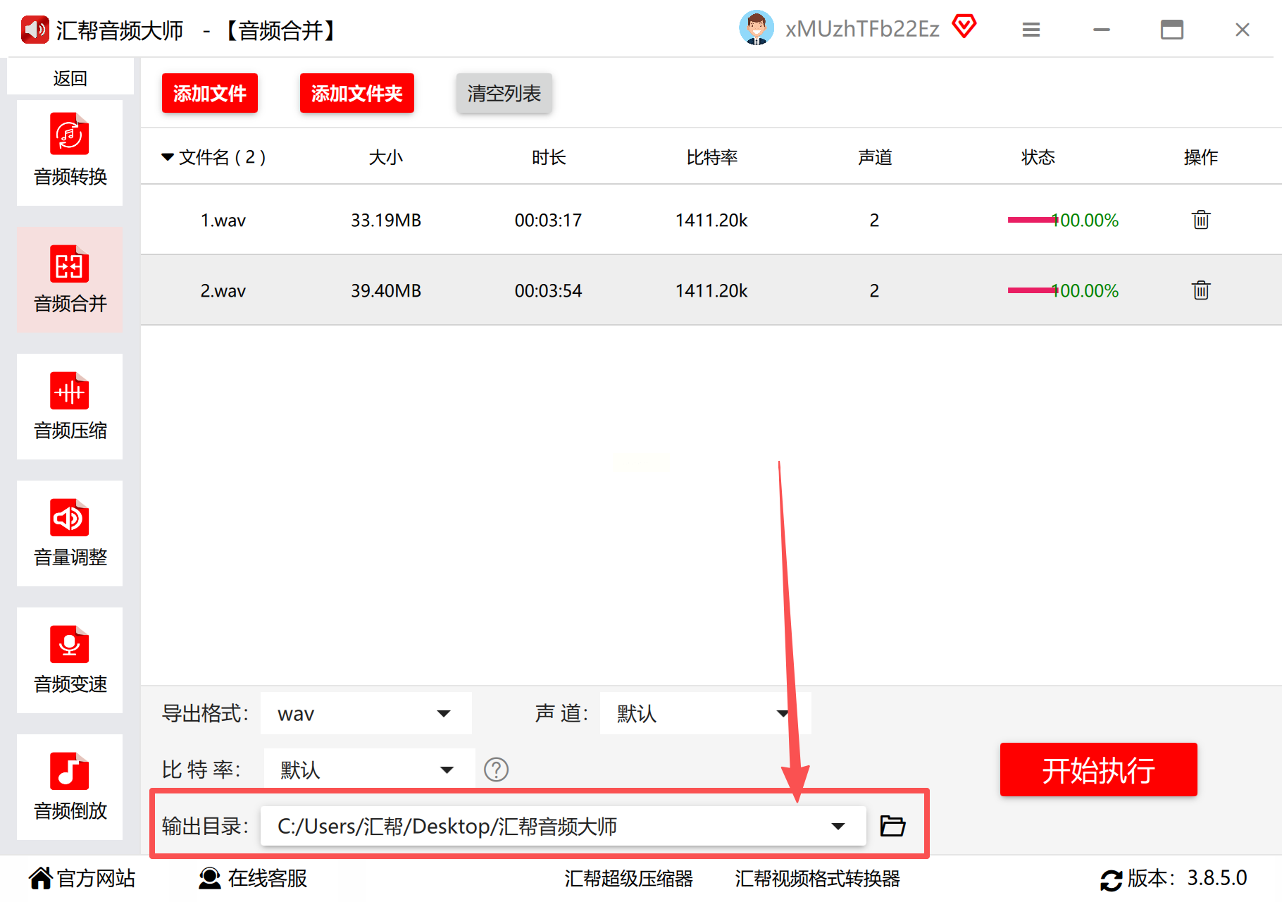 4. 自定义输出路径(如D:\Audio\Merged),避免与原文件混存