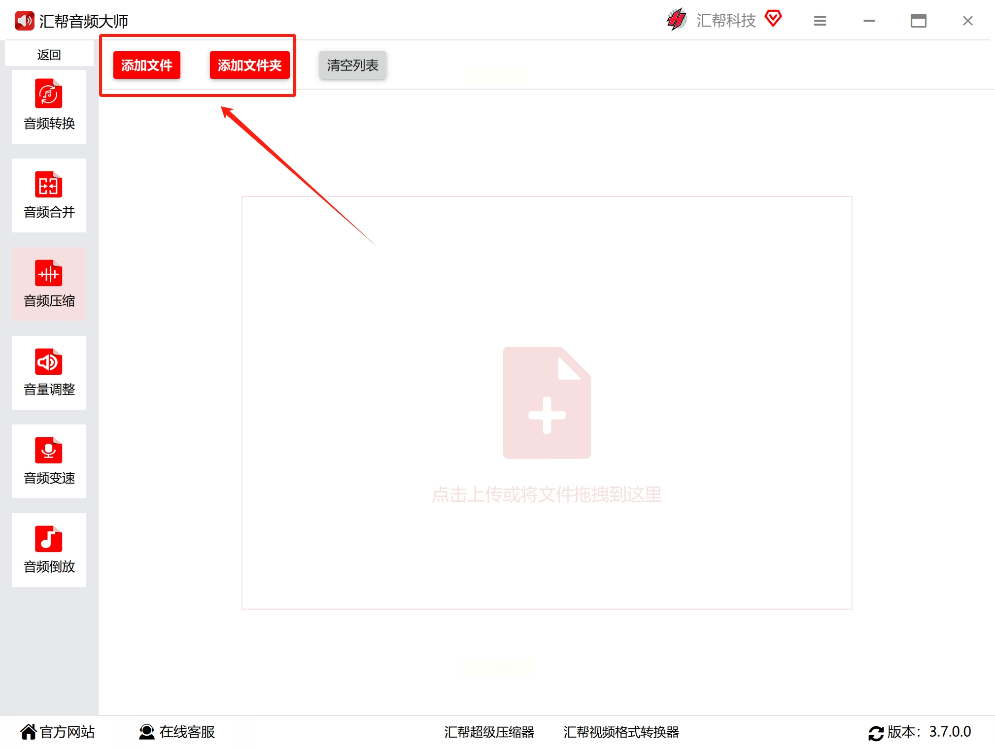 打开软件主界面,直接选择“音频压缩”功能模块。这个工具界面更简洁,操作门槛更低。